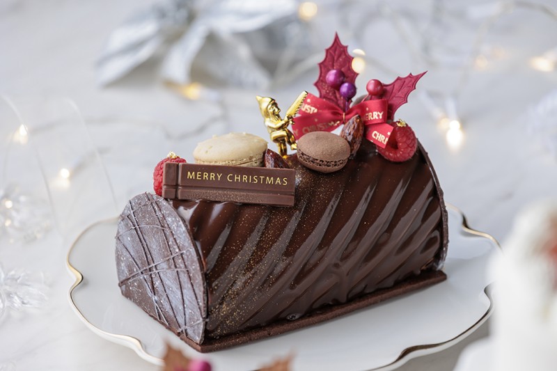 ビターなショコラのムース、中央はキャラメルバニラのムースに洋梨を入れ込み、表面はグラサージュショコラでコーティング。甘さを抑えたカカオ感あふれるムース仕立て。