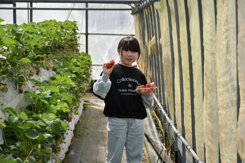 減農薬で安心して食べられるいちごを栽培している、山都町の「なかはた農園」でのいちご狩り体験と、収穫したいちごを使ったスイーツ作りを体験しました。