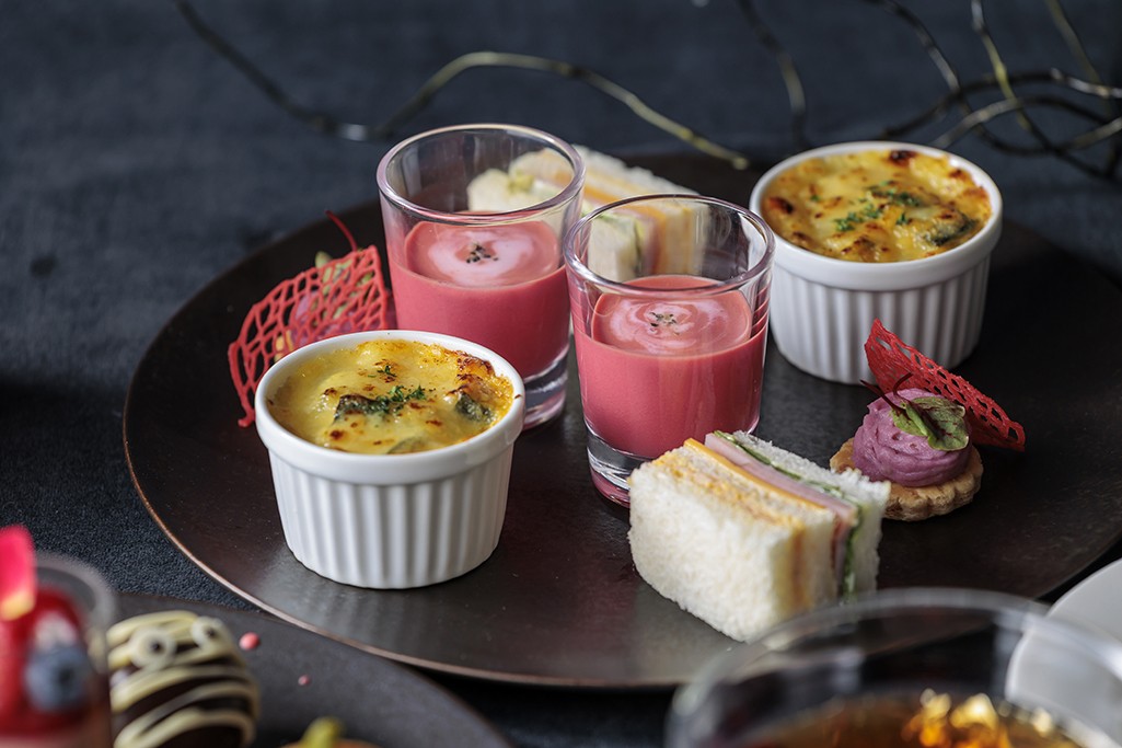 ハロウィンの雰囲気を楽しむための特別なアフタヌーンティ。ハロウィンのテーマに沿ってデザインされたスイーツと、季節の食材を使ったセイボリーをファウンテンおすすめの紅茶とともにお楽しみください。