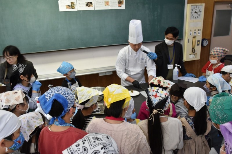 まずはパティシエによる実演と調理方法のレクチャー。皆さん真剣な眼差しで聞いていました。