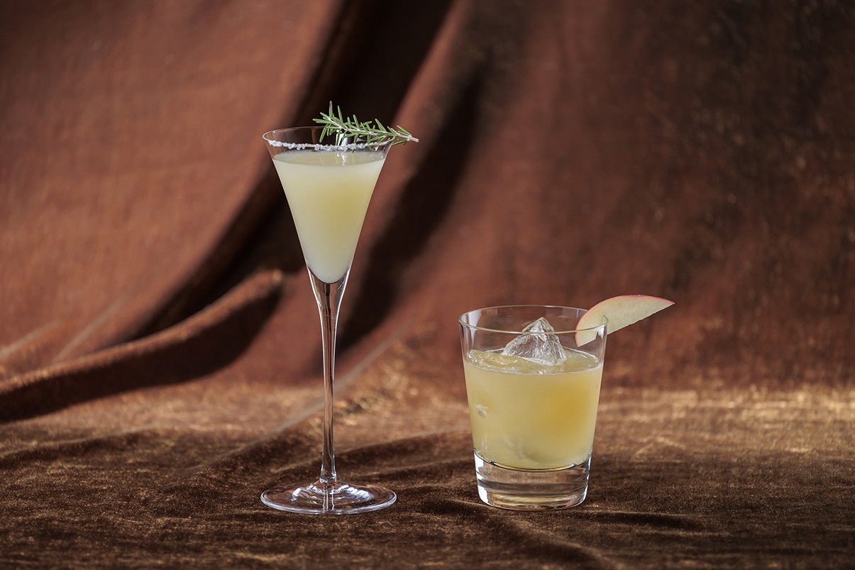 林檎とカルヴァドス、スパイシーな自家製ジンジャーで仕上げたカクテルです。